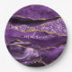 Prato De Papel Nome Personalizado de Geodo Glitter Dourado Violet