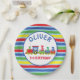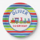 Prato De Papel Nome Personalizado do Comboio aniversário de 3 ano