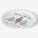Estes pratos de festas de feriado personalizados apresentam um tema de Natal escandinavo sobre um fundo branco. Uma imagem de um quebra-cabeça impressa entre duas árvores de Natal estilo escandinavo é impressa no centro da placa. Uma saudação de "Feliz Natal" é impressa acima do pregador em uma fonte elegante. Um nome de família de exemplo é impresso abaixo da imagem que você pode personalizar para incluir seu próprio nome personalizado ou texto.