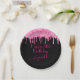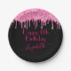 Prato De Papel Nome Personalizado + Idade Rosa Quente Brilho Gote