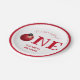 Chapas de papel para a sua primeira festa de aniversário com o tema da joia. Inclui as palavras "Nossa pequena joaninha é um" com a palavra 'um' iniciada com uma ilustração de joaninha. As placas de papel também incluem um nome personalizável.