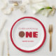 Nossa pequena bola de carne está transformando um primeiro prato de aniversário de bebês com uma borda vermelha. Eles são brancos, vermelhos e marrons com a palavra "um" em letras grandes com uma ilustração fofinha de almôndegas como a primeira letra da palavra. Simplesmente, personalize estas placas, adicione-as ao seu carrinho, e feliz aniversário ao seu maravilhoso bebê! Nossa Pequena Meatball Virando Um Design De Papel De Placa No Feriado | ©Melissa Patton — Artista/Ilustrator