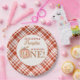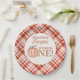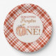 Nossas pequenas placas de papel de primeiro aniversario vermelho floral de abóbora