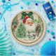 A winter outdoor scene showing a house, trees, and a horse-drawn sleigh crossing a bridge