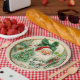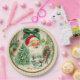 It has a repeating pattern with a soft, faded color palette, mostly in shades of mint green, white, and muted reds/golds.