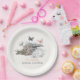 Este elegante prato de chá de noivado "um novo capítulo começará em breve" apresenta um fundo creme com pilhas de livros, borboletas, um buquê de flores, bule e xícara de chá em aquarela. Personalize-o para suas necessidades. Você pode encontrar produtos correspondentes na minha loja.