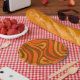 Prato De Papel Novo Groove Trippy Retro 70s Orange Brown Abstrato