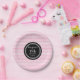 O ano customizável do nome e do aniversário party placas no rosa de bebê do divertimento e do chique, teste padrão retro preto e branco das listras do ziguezague da viga.