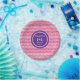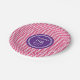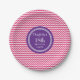 O ano customizável do nome e do aniversário party placas no rosa quente fúcsia do divertimento e do chique, no teste padrão retro roxo e branco escuro das listras do ziguezague da viga.