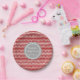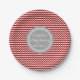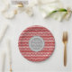 Placas customizáveis do partido de chá de fraldas do nome e da data no divertimento e teste padrão retro chique do vermelho, do cinza de carvão vegetal e o branco da viga do ziguezague das listras.