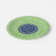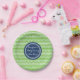 Nome customizável é placas de um partido de chá de fraldas do menino no divertimento e azuis marinhos escuros chiques, teste padrão retro brilhante do verde limão e o branco da viga do ziguezague das listras.