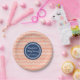 As placas customizáveis do partido de chá de fraldas do nome e da data no divertimento e no ziguezague retro alaranjado do rosa, do azul marinho e o branco do pêssego do chique da viga listram o teste padrão.