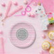 Nome customizável é placas de um partido de chá de fraldas da menina no divertimento e no teste padrão retro brilhante chique do rosa de bebê, do cinza e o branco da viga do ziguezague das listras.