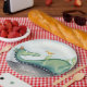 Amigável e grande dragão verde. Um grande dragão verde e um pássaro amarelo podem fazer amigos? Sim, eles podem! Josep Mestres trabalho de arte.