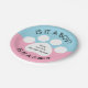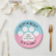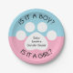 Estas placas de papel indicam um impressão branco da pata em um azul e fundo cor-de-rosa e o texto "é um menino? É uma menina?" Estas placas são grandes para o impressão temático, cão temático, gato da pata temático, ou o género temático animal revela partidos.