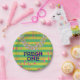 Hip Hop O novo prato de um partido Este é o convite mais legal para a sua festa de primeiro aniversario. Legal fundo combinando a famosa camiseta de Belair com o platter rosa quente que captura totalmente os anos 90.
