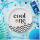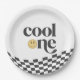 Um cara legal está virando um! Celebre seus meninos grandes dias em estilo com nossos pratos retrorados de rosto feliz descartáveis, com damas onduladas e um rosto muito feliz.
