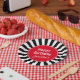 Este design versátil apresenta um padrão de listras de início que rodeia um quadro interno vermelho com os detalhes da sua festa ou evento. Altere o texto para se adequar à sua ocasião substituindo o texto de exemplo mostrado. Você pode alterar as fontes e o tamanho da fonte conforme necessário.