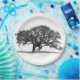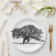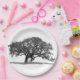 Uma fotografia a preto e branco de um belo carvalho que se espalha.