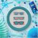 Mão divertida ilustra impressão de arte apresentando um trio de óculos escuros em tons de rosa, azul e cinza sentados em fundo angustiado. Cercado por coordenação do padrão da mancha azul. Excelente para uma festa de piscina, um churrasco ou apenas um verão divertido se juntam.