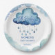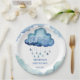 Chapas de modelo de chá de fraldas de de nuvem de bebê personalizadas decoram nuvens de cor-d-água fofinha azul com gotas de chuva chá de fraldas pratos personalizados