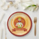 Diversão Prato de Oktobefest com um homem de chapéu alpino com cerveja e pretzels com texto editável.
