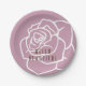 O design do produto apresenta ilustrações de rosas em rosa retrô e branco. Este design botânico cria pratos de papel modernos e únicos com texto personalizado para o aniversário dela, chá de noiva e muito mais - OLÁ, BONITO