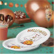 Um bom fantasma sorridente, com um sorridente Pumpkin, que nos cumprimenta por uma festa feliz.