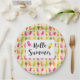 Chapas de papel com a imagem de um padrão de picolés e de sorvetes em aquarelas. Olá Summer escreveu em uma fonte de tendências divertida.