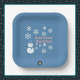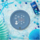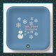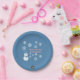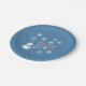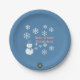 Uma fatia de Life and Delight apresenta Hello, pratos de papel da Wonderland de inverno com um boneco de neve decorado com flocos de neve brancos, escrevendo rosa e um pano de fundo azul. O boneco de neve também tem um chapéu azul e cachecol.