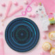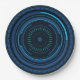 Prato de papel de ficção científica com um olho de robô alienígena azul.