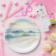 Prato De Papel Ondas de Praia em Aquarela Casamento Rústico à Bei