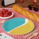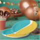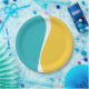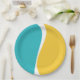 Prato De Papel Ondas Simples 2 em Turquesa, Amarelo e Branco