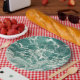 Prato De Papel Ondas Verdes Azuis