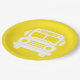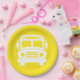 Prato De Papel Ônibus da escola branca em fundo amarelo
