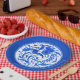 Chapas de papel em vintage padrão de flores jacobão adaptado de porcelana antiga chinesa, em tons de cobalto profundo e azul-ceruliano