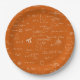 Great math paper plates for graduations, teacher's parties, retirements, birthdays and more. The background is orange with all the formulas and equations in white, handwritten, as if it was chalk. Illustrated and designed by Patricia Alvarez.