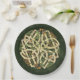 Em um fundo escuro do damasco da verde floresta a versão digital de um símbolo celta antigo: Um ornamento circular feito dos cobras entrelaçou-se nos nós celtas tradicionais típicos. Os esboços do ornamento olham como a ligação, o interior tectured na luz - amarelo e luz - verde.