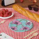 Prato De Papel Orquídeas e correntes, rosa e azul