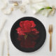 Uma rosa vermelha bonita com pingos de chuva refletiu no preto. Combine estas placas com os guardanapo de papel com o mesmos ou um design similar para ajustes de lugar coordenados em seu partido ou evento seguinte.