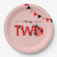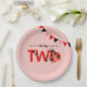 Our Little Love Bug is Turning Two Ladybug Paper Plates. Watercolor Ladybug 2nd Birthday Plates on Light Salmon Pink.