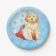 Celebre a temporada de férias com um Ouro bonito, um filhote de Retriever sentado em um chapéu de Papai Noel, em meio a flocos de neve. Feliz Howlidays!