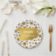 Prato De Papel Ouro Espumando Flocos de Neve Feliz Natal