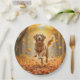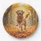 Prato De Papel Ouro Retriever Correndo Em Florestas De Outono