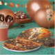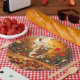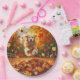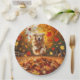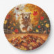 Prato De Papel Ouro Retriever Saltando Na Pilha Folha