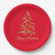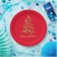 Prato De Papel Ouro Vermelho Elegante Árvore Feliz Natal