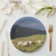 Um design fotográfico de ovelhas de montanha do País de Gales a pastorear nas encostas ensolaradas, assim como a chuva está prestes a começar.