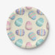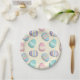 Estas placas de papel apresentam ovos decorados de Páscoa bonitos em cores pastel em amarelo.