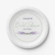 Esta placa de papel do chá de panela contém feixes de flores lavandas na parte inferior com as iniciais da noiva no oval que liga os caules opostos. Personalize o texto nos campos modelo ou clique em personalizar para selecionar um estilo de tipo, tamanho e cor preferidos.