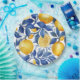 Prato De Papel Padrão Azulejo Lemons Blue Leaves